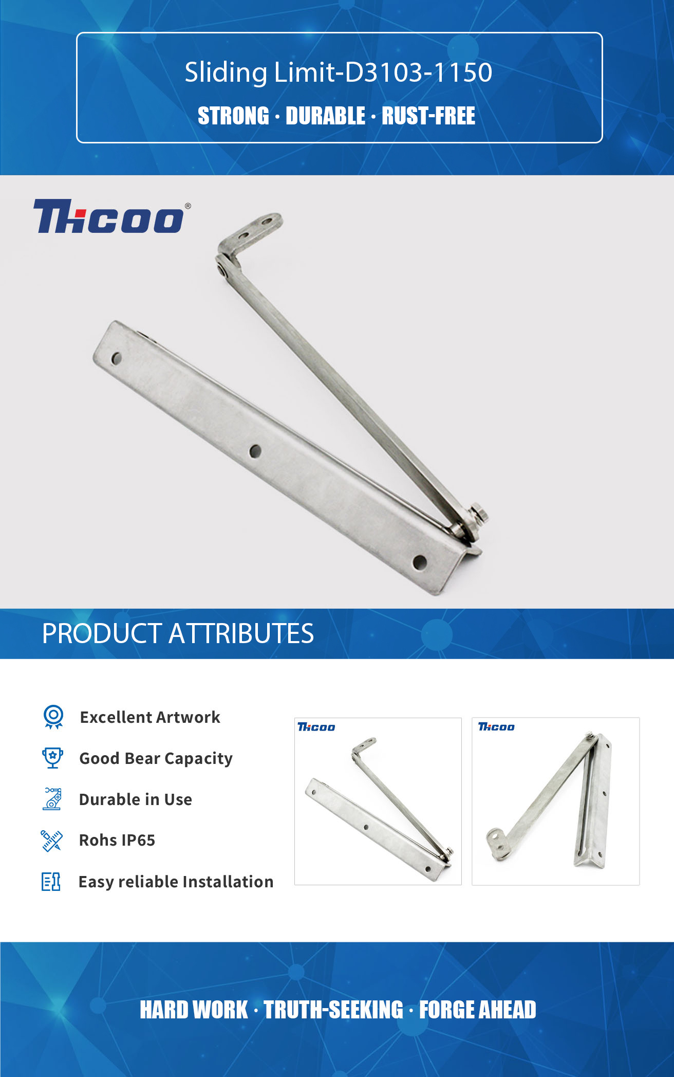 Tá ár saotharlann tástála féin againn agus an trealamh iniúchta chun cinn agus iomlán, ar féidir leo cáilíocht na dtáirgí a chinntiú. Is cineál feiste meicniúil é Teorainn Sleamhnáin-D3103-1150 a úsáidtear chun gluaiseacht réad laistigh de raon áirithe a shrianadh nó go dtí suíomh ar leith.Tá sé comhdhéanta d'eilimint sleamhnáin is féidir a bhogadh feadh rian nó treoir, agus meicníocht a theorannaíonn gluaiseacht an eilimint sleamhnáin go raon áirithe.