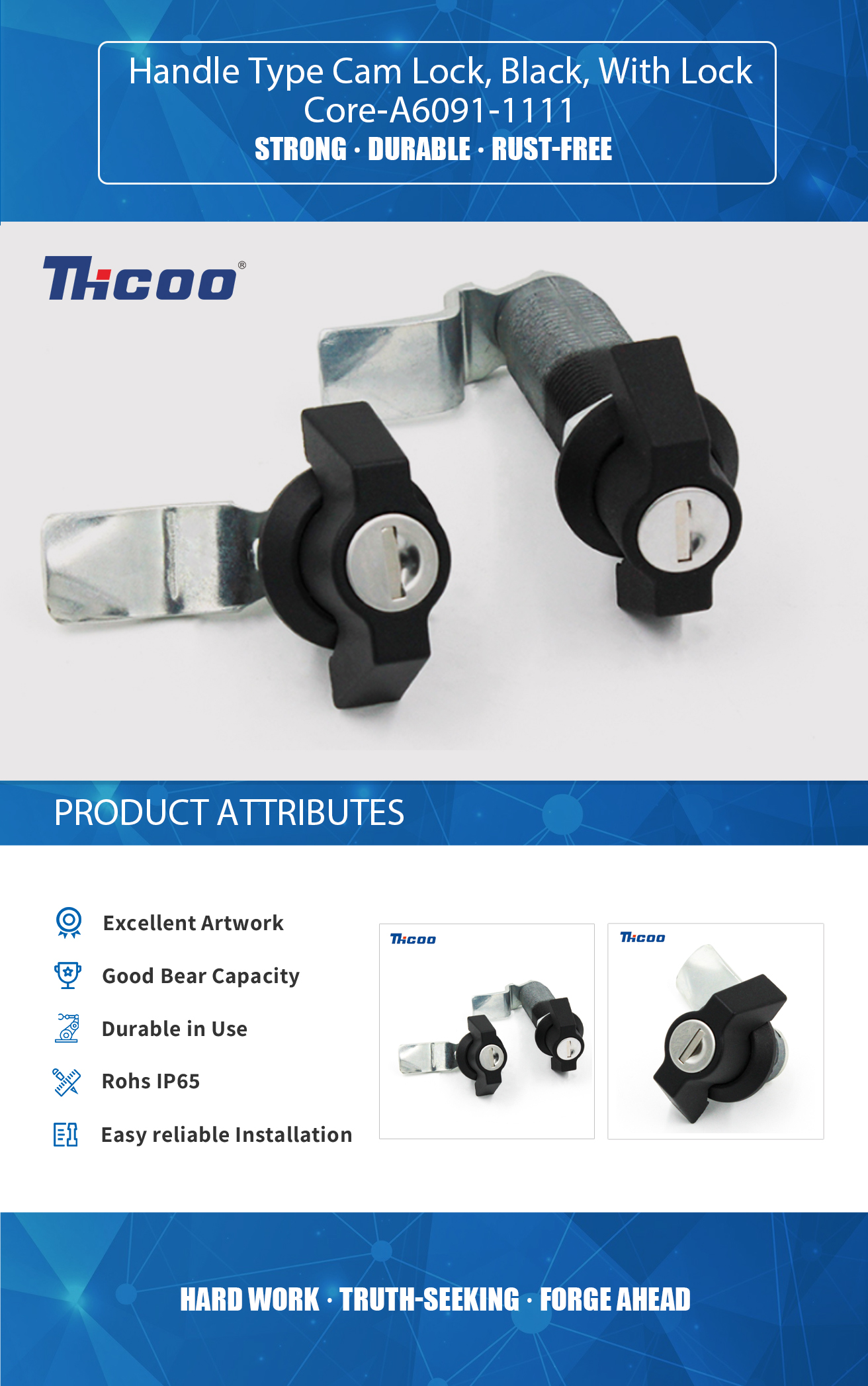 Láimhseáil Cineál Cam Lock, Dubh, Le Lock Core-A6091-1111